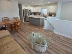This is the perfect starter home in a quiet, small community. It has an open floor plan on the main level with the kitchen looking out into the living room and dining area. The kitchen is equipped with a full stainless appliance package that are like new. The cabinets have tons of storage space just above beautiful quartz counter tops. The deck off the dining room is perfect for the meals out side on the great summer days while enjoying a BBQ. The large island is great for meal prep or to sit at to enjoy a meal. Three bedrooms on the main are perfect for the young family with a 4 piece bathroom. A fully finished basement with an office and another bedroom top the whole package off to make this the perfect home to enjoy with years of no worries about maintenance and repairs because the home is just like new. The large lot already has a great shed for storage with more than enough room on the remainder of the lot to build a large detached garage. The park/playground just across the street is perfect for the young family to use and enjoy. The community has just built a new school to go along with the other amenities. This house is definitely worth a look.