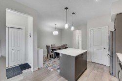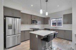 Step into style and comfort with this beautifully maintained 3-bedroom, 2.5-bath home in the desirable community of Midtown — offering incredible value with no condo fees. The bright and open main floor features durable laminate flooring and a welcoming layout that’s perfect for relaxing or entertaining. The modern kitchen stands out with quartz countertops, an under-mounted sink, and plenty of workspace for everyday cooking or weekend hosting. Large east-facing windows fill the home with natural light, creating a warm and inviting atmosphere. Upstairs, enjoy three generous bedrooms, including a spacious primary suite with a walk-in closet and private ensuite. A second full bath and convenient upper laundry complete the level with everyday practicality.Outside, a fenced backyard offers privacy and space to unwind, while the double detached garage adds extra storage and keeps vehicles sheltered year-round. Located close to parks, pathways, shopping, and transit, this home delivers the perfect mix of comfort, style, and convenience — all in one great Midtown location. Move-in ready and waiting for you to call it home.