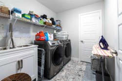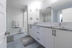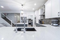 Welcome to this exceptional family home sitting on a massive pie-shaped corner lot, fully fenced with premium metal fencing and convenient RV parking through the alley. The beautifully landscaped backyard features a large finished deck—perfect for entertaining and outdoor living.As you step through the impressive double-door entrance, you’re greeted with a bright and open main floor that offers both functionality and luxury. Enjoy a full bedroom and a full bathroom on the main level, ideal for guests or multigenerational living. The upgraded gourmet kitchen includes built-in stainless steel appliances, quartz counters, and a spacious island, paired with a fully equipped spice kitchen for added convenience. A welcoming living room and dining area complete the main floor, creating the perfect flow for daily living.Upstairs, you’ll find 4 bedrooms, including two master bedrooms—each with its own spa-like ensuite (one 5-piece and one 4-piece). A large bonus room and a full laundry room add even more comfort and practicality.The home also features a 3-bedroom legal suite in the basement with 2 full bathrooms, a generous living area, and a full set of stainless steel appliances—ideal for rental income or extended family.Located just steps away from the pond, walking trails, and playgrounds, this home offers the perfect blend of luxury, space, and convenience for any family.
