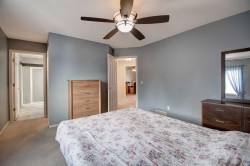 Pride of ownership shines through in this original owner home, offering 1,485 square feet of well-cared-for living space with 3 spacious bedrooms and 2.5 bathrooms. From the moment you step inside, you’ll notice the thoughtful layout and solid construction that only a McKee Home can offer. With recent upgrades such as new windows (including the easy to clean pivot option), custom blackout blinds, and recently installed furnace, air conditioner, and on demand hot water tank, means everything has been taken care of for you. On the main floor you will immediately notice the high-end finishes, including hardwood flooring that brings warmth and elegance to the main living areas. This timeless upgrade not only adds character but is also incredibly durable and easy to maintain. You will love the open concept main floor, which blends the kitchen, dining and living room. Perfect for entertaining larger crowds. The kitchen features a large center island, ample pantry space, and under and over cabinet lighting. Finishing off the main floor is the laundry room, and 2 piece power room. The main floor foyer also features a lighted niche (with its own plug), a large closet and plenty of storage space. Upstairs, you will find three large bedrooms, including your primary suite, with large walk in closet, and attached ensuite (complete with its own heater to keep you warm as you step out of the shower on those chilly mornings). Downstairs, you will find an unfinished space, awaiting your imagination. With two large windows, the possibilities are endless. The hard work has already been done for you, with a bathroom rough in, newer furnace, and new on-demand hot water tank already installed. Step outside to discover the large, undeveloped backyard – a blank canvas ready for your personal touch. Whether you dream of creating a lush garden to grow your own food (upgraded soil already included), building a patio for entertaining, or designing a play space for kids and pets, the possibilities are endless. Sagewood is a family friendly neighbourhood, within walking distance to numerous schools, and complete with many walking paths around the canal and beyond. With easy access to main roads, commuting to Calgary or North is a breeze. The golf course is only a short walk away, and close to many tot parks.