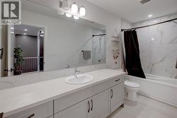 *****OPEN HOUSE Thursday December 4th 3pm to 5pm*****Welcome home to this show-stopping townhome in SW Airdrie, perfectly designed for modern living — with no condo fees! Enjoy mountain views from your private patio and every thoughtful upgrade throughout.The main floor features an open concept layout with a chef-inspired kitchen, granite waterfall island, full-height cabinets with valance lighting, and stainless steel appliances. Plus a gas line making a gas stove possible. The living area showcases porcelain tile fireplaces and designer finishes that set this home apart.Upstairs, the spacious primary suite offers a walk-in closet, luxurious ensuite with a floating vanity and motion-sensor lighting, plus a private balcony to take in the mountain views. Two additional bedrooms, upper laundry, and a full bath complete the level.Downstairs you’ll find a beautifully finished basement with a wet bar and brand-new mini fridge, perfect for entertaining.Other highlights include sound and safe party-wall insulation, R80 insulation value, 48 pot lights, 48"x24" tile in baths and mudroom, TV walls in all bedrooms and living spaces, exterior garage plugs, and a second hose bib.Double garage, landscaped yard, and a location steps from parks and new schools make this home the full package. Move-in ready and truly upgraded to the max! (id:27)