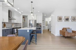 Welcome home to a place where craftsmanship, comfort, and family connection come together. Every detail in this thoughtfully designed home has been carefully curated to blend style and function. The main floor impresses with 10’ ceilings, 9’ doors, and durable LVP flooring throughout. The upgraded kitchen showcases timeless two-tone cabinetry extending to the ceiling, white quartz counters, a granite sink, and a convenient walk-through pantry, gas range hook up if you prefer a gas stove option. Overlooking a spacious dining area and an inviting family room with a beautiful stone-surround fireplace, this open design is ideal for gatherings both large and small. A wide 4-foot staircase leads to the upper level, where vaulted ceilings highlight a grand bonus room—perfect for family movie nights or quiet evenings in. The primary suite is a true retreat featuring double sinks, a tiled shower, a relaxing soaker tub, and a generous walk-in closet. The upper-level laundry room adds everyday convenience, 2 generously sized bedrooms and a main bath with oversized counter with separated shower. 9’ ceilings on upper and basement levels, knockdown ceilings throughout, and the comfort of air conditioning, this home offers a bright, open, and elevated feel. The newly finished basement adds flexibility with waterproof laminate flooring, an open area easily converts into a bedroom with the addition of barn doors if you choose, basement is complete with a 4-piece bath with dual access from both the room and main area. Step outside to enjoy a poured concrete patio, deck, and storage shed. The extended driveway and oversized garage provide ample space and functionality. A home where timeless design, quality finishes, and family living come beautifully together. Building Envelope Warranty until April 30, 2026 and Structural Warranty until April 30, 2031.