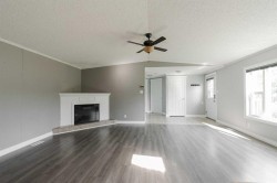 Welcome to 150 Hopegood Drive; Discover your private retreat on this 1-acre property in Anzac, nestled among mature trees that offer both serenity and striking curb appeal. Just minutes from Gregoire Lake’s shores, the boat launch, day-use area, and the Anzac Rec Centre, this home offers the perfect balance of relaxation and recreation. Whether it’s peaceful walks by the water, a day of fishing, or quading right from your backyard, you’ll always find something to enjoy in this serene country setting.Inside, the open-concept layout features a spacious foyer leading to a bright living room with a cozy corner electric fireplace and custom mantle. The kitchen blends style and functionality, offering abundant cupboard and counter space, a walk-in pantry, and a skylight that fills the room with natural light. The adjoining dining area opens to a two-tiered back deck with a privacy screen on the upper level—perfect for afternoon sun, outdoor dining, or simply relaxing with a view.The home offers two comfortable bedrooms at the front with a full 4-piece bathroom, while the private primary suite boasts a walk-in closet and 4-piece ensuite. All bedrooms include ceiling fans and blackout blinds for comfort. A separate laundry and storage room adds convenience to the thoughtful layout.Outside, the backyard is a sunny retreat backing onto peaceful green space. Municipal water and sewer hookups provide peace of mind. An extra-long driveway allows ample parking for vehicles, RVs, and toys, while the oversized 29’ x 26’ heated garage is a dream space with soaring ceilings, plenty of power outlets, and room for a full workshop.Here, you’ll enjoy the quiet, space, and peace that define Anzac’s country lifestyle—paired with all the comforts of home. Schedule your tour today!