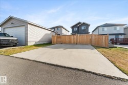 Welcome to this bright and beautifully upgraded 2 storey home in Forest Heights, a quiet and family-friendly neighbourhood surrounded by parks, trails, and ponds. Built in 2017, this home offers just under 1,600 sq ft of thoughtfully designed living space that feels open and inviting. The main floor features a modern kitchen with tall white cabinets, granite countertops, stainless steel appliances, and a large island with seating. The dining area is spacious, and the living room offers a cozy vibe with its sleek electric fireplace. Upstairs, the primary bedroom features a coffered ceiling, walk-in closet, and a double-sink ensuite. Two additional bedrooms and a full bathroom complete the upper level. The backyard is built for summer fun with a private deck, built-in bench seating, a custom playhouse, and a large concrete pad perfect for a fire pit or outdoor games. The unfinished basement offers potential for a rec room, gym, or playroom. Close to schools and easy access to major roads.