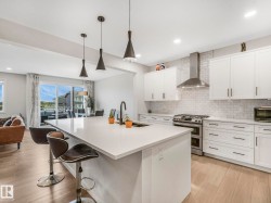 This stunning 2,351 sq. ft. two-storey WALKOUT in Elan stands out in every way. Backing onto the trail with a full walkout basement, it’s built by Homes By Avi and filled with thoughtful details. The main floor is bright and open, featuring luxury vinyl plank flooring, a chef’s kitchen with stainless steel appliances, a large island, and seamless flow into the dining and living space. Upstairs, you’ll find 3 bedrooms, including a primary suite with a spa-like 5-piece ensuite, plus a bonus room that’s perfect for movie nights or a play space. A 4-piece bath and convenient laundry complete the level. Extras like A/C, custom blinds, full landscaping, and a deck with gas line mean you can move right in and start living. The walkout basement gives you even more potential to create the space your family needs. Better than new—this home is ready for you.