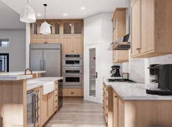 BRAND NEW HOME | 50' x 110' CORNER LOT | BACKING ONTO GREEN SPACE | DOUBLE ATTACHED GARAGE | CUSTOM FINISHES | 1,273 SQ FT OF DEVELOPED LIVING SPACE (2 BED/2 BATH) | All in Beiseker’s newest community “THE JUNCTION” - A perfect blend of affordability and convenience, the community offers a haven for families seeking a welcoming, tight-knit atmosphere. Nestled in Alberta’s picturesque prairie landscape, Beiseker captures the essence of small-town charm merged with modern appeal. Step inside where you’ll find a bungalow layout that seamlessly combines comfort and functionality! On the right side of the home, you’ll find a gorgeous vaulted ceiling spanning over the living room and into the kitchen and dining area. The living room is large and is the perfect spot to relax! At the back of the home you’ll find the kitchen is designed for convenience. You get brand new stainless steel appliances, ample counter space, a pantry and lots of cabinetry for all your storage needs, as well as a beautiful kitchen island. Adjacent to the kitchen is an elegant dining room, perfect for entertaining family and friends! From here, step outside through the patio doors and enjoy easy access to the large backyard, perfect for outdoor activities, barbecues, or simply relaxing in the sun. You also get a beautiful front porch out front! Back inside and on the far right side of the home, the primary bedroom offers a private retreat with a walk-in closet and a 4-piece ensuite bathroom. Down the hall is an additional bedroom that is spacious and bright, offering plenty of room for family members or guests. You’ll also find a full 4-piece bathroom and a dedicated laundry room, making everyday chores a breeze! Back at the front of the home is your foyer and easy access to your oversized double attached garage that provides tons of space to store your vehicles and personal belongings. The basement offers an approximate additional 1200+ SQ FT of undeveloped living space, giving you the flexibility to finish it now or in the future according to your needs. Whether you envision an extra bedroom, a living area, a home gym, or a recreation room, the possibilities are endless! Enjoy a balance of comfort and accessibility, with easy access to local amenities, parks, schools and major urban centers. Crossfield is a 27 minute drive, Airdrie is a 30 minute drive and Calgary is only a 40 min drive away! Don't miss the opportunity to own this exceptional home within the picturesque surroundings of The Junction! ***Renderings are representative. Exterior and interior finishes are subject to change. Additional homes and models available. Inquire for more details!***