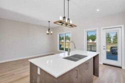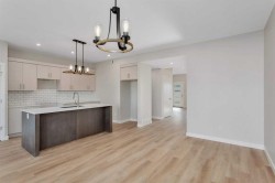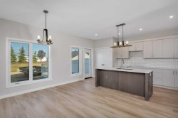 A beautiful 2 storey with all of the quality finishings you'd expect by Heartfaster Construction Ltd. Bright, open living room, with vinyl plank flooring and large area for furniture arrangement. Vinyl plank flooring continues into the kitchen & dining are & complements an abundance of neutral colored cabinets & Quartz countertops. There is a large island with room for seating & the dining area can accomodate a family sized table. Large walk-in pantry & 2 piece bathroom finish the main level. A wide staircase leads upstairs where there are 3 good sized bedrooms, a 4 piece bathroom with a window & spacious quartz vanity, & a 3 piece ensuite in Primary with a window & quartz vanity as well! There are his & hers closets in the Primary and an upstairs laundry room that includes side by side washer & dryer & handy built in cabinets. The basement plan outlines 2 additional bedrooms with large windows, a 4 piece bathroom & spacious family room. The back deck is 10x12 & overlooks a good sized yard that is sodded & includes gravel pad for 2 parking spaces. Windows are Triple Glazed, in-floor heat is roughed in & there is composite decking both front & back. Great location in newer neighbourhood, close to walking & biking paths & easy access to all that the thriving community of Blackfalds has to offer!
