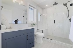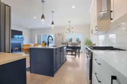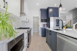Welcome to 30 Palmer Close, an immaculate, nearly new home crafted with elevated finishes and thoughtful upgrades throughout. The main floor showcases a stunning chef-inspired kitchen complete with quartz countertops, cabinetry to the ceiling, a gas range, and tile carried to the ceiling for a polished, designer look. The living room centers around a beautiful, cultured stone gas fireplace, creating an inviting atmosphere for both everyday living and upscale entertaining.Upstairs, a bright bonus room offers flexible living space, while the luxury primary suite features a generous walk-in closet and a custom ensuite with a fully tiled shower, rain head, and frameless glass door, a true retreat.This home is equipped with tankless hot water, a gas line to the garage, and a gas line to the deck for effortless outdoor cooking. Outside, the property impresses with professional landscaping, a fully fenced yard, and exceptional curb appeal that sets it apart.Every detail has been curated for comfort, style, and longevity, an exceptional opportunity to own a move-in ready home of this caliber in Blackfalds.
