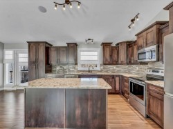 24 Upland Place is in the most wonderful, family friendly location... And this property is a WOW!! Exquisite attention to detail has been paid to the every square inch of this spectacular 5 bedroom, 3 bathroom, 100% move in ready home! Each room is better than the last... A gorgeous kitchen on the open concept main floor, highlighted by vaulted ceilings, beautiful floors and styled to perfection! The main floor features the kitchen, living room and dining area that opens to the covered back deck, as well as two bedrooms, main bathroom and a large pantry. Retreat to the Primary Suite situated above the garage and enjoy the generous square footage, highlighted by a walk in closet and full ensuite bathroom. A bright and open concept basement includes bedroom 4 & 5, a large bathroom/laundry room, an extra large family room and utility room. Enjoy the attached heated garage in the front, featuring a large concrete driveway! This home checks of all of the boxes and beyond, including but not limited to granite countertops, Control 4 System, central A/C, central vac, covered back deck, tankless hot water and much more! Built in 2014, this home still feels like NEW!