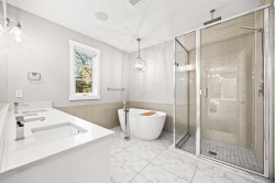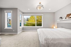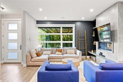 Incredible opportunity to own one of the best priced semi-detached luxury infills in the inner city. A beautiful home in the heart of Bridgeland offering all the perks of city living with no condo or HOA fees. A 5 minute walk from Downtown, Bow River Pathway, and all the amenities the beautiful community of Bridgeland has to offer. Walk or bike to work with the bike lane directly in front of your home. This is not your typical semi-detached property, offering 3 bedrooms + an office with an adjacent rooftop balcony & 3.5 baths, CENTRAL AC, situated on a 36-foot-wide lot, it offers a noticeably more open and spacious feel throughout. Perfectly situated across from Flyover Park, this home features over 2,400 sq. ft. of developed living space designed with comfort and style in mind. Upon entering, you’ll immediately notice the 9 ft ceilings and engineered hardwood flooring that flow seamlessly across the main floor. The bright, wide living room is anchored by a tile-surround gas fireplace with custom built-in shelving, extending naturally into the dining area and open concept gourmet kitchen. The kitchen showcases beautiful quartz countertops, modern white cabinetry, a subway tile backsplash, and stainless steel appliances. A tucked away pantry and 2-piece bathroom complete the main level. The open riser staircase serves as an architectural focal point connecting all levels. On the second floor, you’ll find the serene primary retreat, complete with a walk-in closet and 5-piece spa inspired ensuite. A quiet reading nook within the primary bedroom captures the morning sun through large, bright windows. This level also includes a spacious laundry room for added convenience. Heading up to the third floor, natural light floods the hallway with beautiful downtown views. The open bonus room offers flexible space for a home office, studio, or entertainment area, and opens onto the rooftop deck equipped with a built-in gas line and stunning city skyline views. This level is complete with an additional bedroom and a 4-piece bath overlooking downtown. The fully developed basement includes a spacious media room, perfect for movie nights, a fully equipped wet bar, bedroom, and 4-piece bathroom, ideal for guests or extended family.Out front, your private patio is enveloped by mature trees that naturally screen the space from the street, creating a serene and intimate retreat in the heart of the city. Complete with a built-in gas line, it’s the perfect setting for summer BBQs or quiet evenings outdoors. The detached garage offers plenty of space for your car parking needs and generous built in storage for bikes, tools, and all your outdoor essentials. With a Walk Score of 94 and a Bike Score of 97, this home offers unbeatable convenience. Steps from Blush Lane Organic Market, Luke’s Drug Mart, UNA Pizza, Village Ice Cream, numerous coffee shops, and a variety of beloved local spots. Don’t miss this opportunity. Homes like this with this location rarely come to market in Bridgeland.