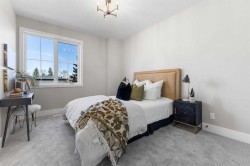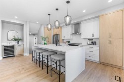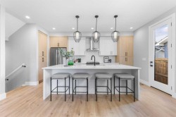 Beautifully designed and brand new, this 3+1 bedroom townhome built by Huber Homes in desirable Westgate offers nearly 2200 sq. ft. of developed living space with high-end finishes and modern comforts throughout! The open main level showcases, recessed lighting and a bright, airy floor plan. The kitchen is a true highlight, featuring a central island with eating bar, contrasting cabinetry, stainless steel appliances and a stylish dry bar. A spacious dining area and inviting living room with gas fireplace complete the main floor — the perfect layout for everyday living and entertaining alike.Upstairs you’ll find 3 comfortable bedrooms, including a relaxing primary retreat with walk-in closet and spa-inspired ensuite with double sinks and contemporary finishes. Two good sized bedrooms, a full bath and conveniently located laundry room complete this level.The fully finished basement extends your living space with a generous family/media room, a fourth bedroom and a full bath — ideal for guests, teens or a home office setup.Additional highlights include a front deck with BBQ gas line, a single detached garage, and thoughtful design inside and out. Located just steps from schools, shopping, parks and transit, this home combines style, function and location in one of Calgary’s sought-after southwest communities.
