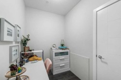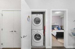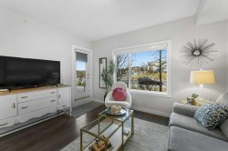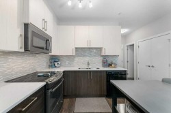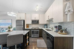 Welcome to your new home in beautiful Sage Hill! This stylish one-bedroom plus den condo offers the perfect blend of comfort, functionality, and location. Step inside to an inviting open-concept layout featuring bright natural light, luxury vinyl plank flooring, and modern finishes throughout. The kitchen showcases sleek cabinetry, full tile backsplash, stainless steel appliances, and ample counter space — ideal for cooking or entertaining. The spacious den provides the flexibility for a home office, fitness nook, or reading space, while the primary bedroom comfortably fits a queen-sized bed and includes generous closet space. You’ll also appreciate the convenience of in-suite laundry and upgraded lighting. Enjoy your own private front entrance with easy access for guests and plenty of street parking in addition to your assigned stall. Situated steps away from scenic walking paths, parks, playgrounds, and natural ravines — plus only minutes to major shopping, restaurants, and transit. Everything you need is right here in this vibrant, amenity-rich community. Whether you’re a first-time buyer, downsizer, or investor, this is one you’ll want to see!