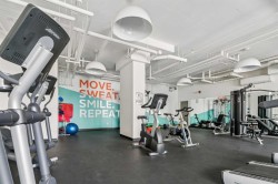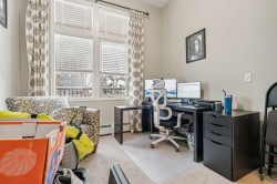 Step into this showcase worthy main floor corner unit offering almost 900 sq ft of bright, open concept living. Soaring 11 foot ceilings and floor-to-ceiling windows flood the space with natural light, creating an airy, upscale feel the moment you walk in. The modern white chef inspired kitchen features sleek quartz countertops, stainless steel appliances, and plenty of cabinetry perfect for cooking, hosting, or enjoying a quiet night in. The layout is ideal with two spacious bedrooms positioned on opposite sides of the unit for added privacy, along with two full bathrooms, including a stylish ensuite.Enjoy the convenience of in-suite laundry, durable mahogany-tone vinyl flooring, and the comfort of being on the main floor, no elevators needed. As a corner unit, you benefit from extra windows, enhanced privacy, and additional outdoor exposure.Located just steps from shopping, restaurants, transit, and daily amenities, this home blends modern style with unbeatable convenience. Perfect for first time buyers, downsizers, or investors.