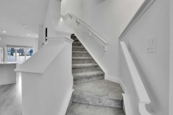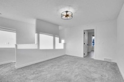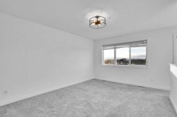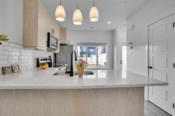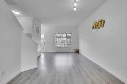 Welcome to this stunning END-UNIT townhome in the heart of Livingston, offering over 1,600 sq. ft. of bright, modern living across three well-designed levels.The main floor features an open-concept layout with large windows that fill the space with natural light. Enjoy a spacious living room, full dining area, and a stylish kitchen with ample cabinetry, a large island, and quality finishes—perfect for everyday living and entertaining.The second level offers two generous bedrooms, each with excellent closet space, plus a full bathroom and convenient laundry.The third level is dedicated to the impressive primary suite, complete with a large walk-in closet and a luxurious 5-piece ensuite featuring dual sinks, a soaker tub, and a separate shower. This private top-floor retreat is a rare and highly desirable feature.Outside, you’ll love the fully fenced backyard, ideal for kids, pets, or summer gatherings. The rear parking pad provides convenient off-street parking with potential for a future garage.Located in vibrant Livingston, you’re close to parks, playgrounds, pathways, and the popular Livingston Hub with its state-of-the-art amenities. Quick access to Stoney Trail makes commuting easy.A spacious, stylish end-unit townhome with a private top-floor primary retreat—this one is a must-see!