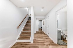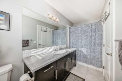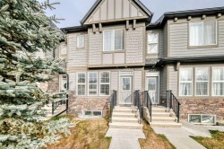 A MUST SEE! NO CONDO FEES! Welcome to this stunning and meticulously maintained 2-storey townhouse in the beautiful community of Legacy. Offering over 1,940 square feet of living space, this home features vinyl plank floors on the main and basement level, cozy carpet upstairs , and a 9 feet ceiling that enhance the open-concept design. The main floor boasts a bright living room and a modern designer kitchen complete with trendy cabinetry, quartz countertops, a large center island, stainless steel appliances and tile backsplash. A convenient 2-piece powder room completes this level. Upstairs, you'll find three generously sized bedrooms with ample closet space. The primary bedroom includes a full ensuiite with quartz counters and a walk-in closet. Another 4-piece bathroom, also with quartz countertops, is located in the hallway. The fully developed basement offers a spacious family room perfect for relaxing or entertaining, along with an additional bedroom and a 3-piece bathroom. Within close proximity to public transit, schools, shopping and playgrounds- everything you need is within reach. Don't miss out-book your showing today!