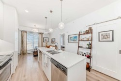 Welcome to this beautifully maintained 2-bedroom, 2-bathroom condo in the highly sought-after Legends of Cornerstone. Occupied by a single tenant since possession, this home has been exceptionally cared for and shows like new. Featuring 9 ft ceilings, oversized windows, and modern laminate flooring, the unit offers a bright, open-concept layout that provides both comfort and functionality.The contemporary kitchen is equipped with quartz countertops, stainless steel appliances, and sleek cabinetry extending to the ceiling—perfect for everyday cooking or hosting guests. The living area flows seamlessly onto a spacious private balcony, ideal for morning coffee, fresh air, or relaxing after a long day.The primary bedroom includes a walk-in closet and a 4-piece ensuite bathroom. A well-sized second bedroom and an additional full bathroom make this home ideal for small families, professionals, or investors.Enjoy the convenience of titled underground parking and assigned storage. Residents also have access to some of the best condo amenities in the city, including a fully equipped gym, yoga studio, spinning room, theatre room, pet spa, and a large community event space with a kitchen—perfect for larger gatherings or celebrations.Located in Cornerstone, one of Calgary’s fastest-growing communities, this condo is minutes from Stoney Trail, Calgary International Airport, shopping centers, schools, parks, and walking paths.A must-see opportunity—book your private viewing today!