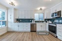 Spectacular Renovated 4 level split, over 2,000 sq.ft of developed space, 3 bedrooms+ 3 Baths, Enter new luxury vinyl flooring, Beautiful new White kitchen w/stunning backsplash, Room for a table by the large west facing window w/ loads of natural light, New carpet- 50 oz. underlay on stairs , upper level and family room. Upper level has a large primary bedroom with a renovated 3pc bath with dual sinks and a tiled walk in shower. 2 other good size bedrooms and another 4pc bath. 3rd level walk out to the yard and a oversized 24 x 24 detached double garage, shed and fenced yard. Large family room with a number of windows, a gas fireplace and a 4pc bath, laundry room on 3rd level, 4th level games room, office or a 4th bedroom just needs a egress window. Freshly painted throughout neutral designer colour and accenting black railings. Move in ready. Mature landscaping and a nice quiet location. Woodbine is a wonderful community close to everything, Fish Creek Park, Stoney Trail, The BRT Bus service to downtown and many good schools and churches. Don't miss this great opportunity, Excellent Value!! You could even be in for the Holidays! (Loved for the last 30 years by the same Family)