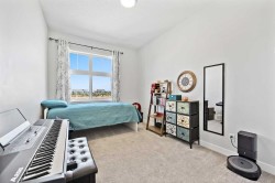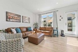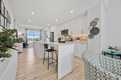 Welcome to this stunning 3-level townhome where modern design meets natural beauty, located steps from Quarry Park and surrounded by over 70,000 sq. ft. of lush community gardens. Offering 3 SPACIOUS BEDROOMS, 2.5 BATHS, and an A DOUBLE ATTACHED HEATED TANDEM GARAGE with rough-in for EV charging, this home blends convenience, style, and sustainability. Step inside and be impressed by the bright, open-concept floor plan with 9-foot ceilings, oversized windows, and a seamless flow from living to dining. The gourmet kitchen showcases quartz countertops, ceiling-height cabinetry, a flush oversized island, sleek stainless steel Whirlpool appliances including a convection oven, and LED under-cabinet lighting for that perfect touch of elegance. The main floor extends outdoors with both a private balcony—ideal for your morning coffee—and a fenced backyard that opens to a walking path. Upstairs, you’ll find three inviting bedrooms, including a serene primary suite with a walk-in closet and a beautifully appointed ensuite featuring an over sized walk-in shower with glass sliding doors and gorgeous extended quartz counter top. The added convenience of an in-suite washer and dryer makes daily living effortless. This home was designed with Jayman’s Core Performance features, including: Solar panels to assist with utilities, coded front door with mobile app and notifications, Smart garage door with mobile app and notifications, Ring camera, Lifebreath HRV giving you fresher, cleaner air and Smart Switches through out that are integrated with Alexa/Google, Luxury Vinyl Plank flooring for durability, triple-pane windows, Ecobee Alexa-enabled thermostat with remote sensor, central air conditioning for your warm Summer months, tankless water heater with circulation pump, Moen fixtures & James Hardie siding. Perfectly maintained by its original owners, the home is accented by a fresh, neutral palette and warm design touches that create an elevated yet cozy atmosphere. Beyond your door, Les Jardins offers unmatched amenities: a full fitness centre, dog park, central gardens, and a truly walkable lifestyle with quick access to Deerfoot and Glenmore Trail. Here, the exterior beauty seamlessly matches the interior charm—low-maintenance, sustainable, and built for the way you live. Nothing Compares. Welcome home to Les Jardins.