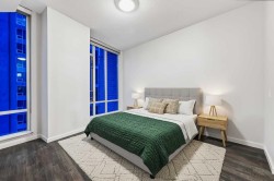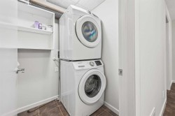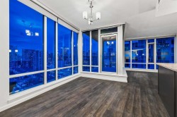 Exceptional 16th-Floor Unit with Breathtaking Panoramic Views! This beautifully appointed unit on the 16th floor offers stunning, uninterrupted views of both the mountains and downtown skyline. Ideally situated within close proximity to the LRT and the MNP Community & Sport Centre, this residence combines convenience with luxury. The upgraded interior features high-quality finishes, including maple cabinetry, granite countertops, stainless steel appliances, luxury vinyl flooring, tile, and floor-to-ceiling windows that maximize natural light and panoramic vistas. The entryway includes a walk-in coat closet with custom built-in storage for added organization. A dedicated home office area is integrated into the layout, complete with a granite work surface. The in-suite laundry room offers additional storage space for everyday practicality. The generously sized second bedroom enjoys remarkable views and includes a walk-in closet with a convenient cheater door leading to a well-appointed bathroom featuring a large walk-in shower. The kitchen, with its modern design, opens seamlessly to the dining and living areas, creating an ideal space for entertaining. The private balcony extends the living space outdoors, offering an excellent setting for barbecuing or simply taking in the spectacular scenery. The comfortable living room provides an inviting atmosphere for relaxation and social gatherings. The primary bedroom is a peaceful retreat, showcasing expansive views and a walk-through closet that leads to a luxurious four-piece ensuite bathroom. Residents also enjoy access to a well-equipped amenity center, which includes an exercise room, hot tub, sauna-equipped dressing rooms, a gathering space with pool table, theater room and patio access, one being the rooftop! Additional features include assigned storage and one titled parking stall. Located just a couple of blocks from the Stampede Grounds and the C-train station, this prime location offers easy access to downtown amenities, dining, entertainment, and much more. This building is 18+ and no dogs are allowed. Book your showing and come on Buy!
