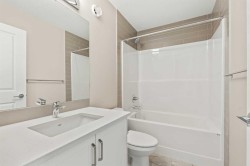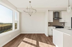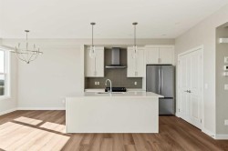 Welcome to your beautiful, brand-new Alliston build featuring 4 bedrooms, 3 full bathrooms, nearly 2,100 sq. ft. of expertly designed living space, and a side entrance to the basement, perfect for future development. This home is ideally located on a pie lot on a quiet crescent, where kids can safely play outside and you can enjoy peaceful mornings with a cup of coffee while watching the sunrise from the views out your East backyard windows. Step inside and be greeted by stylish vinyl plank flooring and airy 9-foot ceilings that flow through the open-concept main floor. The chef-inspired kitchen boasts floor-to-ceiling cabinetry, quartz countertops, a spacious island, and a sleek stainless steel appliance package with a gas stove. A dream for anyone who loves to cook and entertain. The adjoining dining area and living room are bright and welcoming, anchored by a striking electric fireplace that serves as the space's focal point. A main-floor bedroom and a complete bathroom offer flexibility for guests, a home office, or convenient main-floor living. The mudroom off the 19x20 garage (with an additional 4' for stair access) ensures there's ample room for parking two vehicles. Upstairs, the primary suite is your private retreat, featuring a walk-in closet with natural light and a spa-inspired ensuite with a large shower and soaker tub. Two additional spacious bedrooms, another full bathroom, a convenient laundry room, and a front-facing bonus room complete this well-planned upper level. The unfinished basement, with its separate side entrance, offers loads of potential. It's already equipped with bathroom rough-in and wet bar rough-in with water lines, giving you a head start on future development possibilities. Located in the vibrant community of Belvedere in Calgary's southeast, this home offers the perfect blend of urban convenience and relaxed suburban living. With nearby parks, schools, shopping, and easy access to major routes, Belvedere is a welcoming, family-friendly neighbourhood where you can truly put down roots. Photos are representative and are of the same model home with similar colour pallet/finishings. RMS has been applied to builder blueprints. Taxes to be assessed.