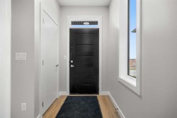 Welcome to the Edward by Partners Homes, located in the new North Calgary community of Keystone Creek, across from an environmental reserve. With 3 bedrooms and 3 full bathrooms, this newly built quick-possession home blends modern style, everyday convenience, and long-term value, and includes full new home warranty for added peace of mind. The main floor features a versatile front flex room/bedroom, ideal for a home office, guest space, or multi-generational living. An open-concept layout connects the dining and living areas to a well-appointed kitchen with shaker cabinets, quartz countertops, a large island, upgraded hood fan, and gas range, along with plenty of storage. A rear mudroom provides access to the backyard, complete with a BBQ gas line for outdoor living. A full bathroom with a walk-in shower completes the main floor for added convenience. Upstairs, the primary suite includes a walk-in closet and an ensuite with dual sinks and a walk-in shower. Two additional bedrooms, a central bonus room, a full bathroom, and upper-level laundry with washer and dryer included make this layout highly functional for families or shared living. Additional features include 9’ ceilings on the main and in the basement, a two-car gravel parking pad, Prairie elevation, upgraded finishes, and front yard landscaping with trees and shrubs. Keystone Creek is a thoughtfully planned community in North Calgary offering quiet streets, green spaces, and direct access to pathways, wetlands, and parks. Daily essentials, schools, dining, and services are minutes away, with convenient access to CrossIron Mills, YYC Airport, Stoney Trail, and Deerfoot Trail. Book your showing today to discover why Keystone Creek is quickly becoming one of Calgary’s most desirable new communities.