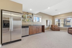 This isn’t just a house… it’s a dream castle!!! Welcome to your new home in the heart of Cranston - perfectly positioned just steps from the park, playground, ravine pathways, schools, and the community shopping centre. This exquisite two-storey walkout residence offers timeless architectural charm, warm natural materials, and expansive living spaces designed for both everyday comfort and elegant entertaining.As you arrive, the home’s exceptional street presence draws you in with its stone detailing and stately front entry. Inside, a grand foyer and open staircase flooded with natural light from the skylight above sets the tone for the entire home. The main floor features rich hardwood flooring and an open-concept layout centered around the gourmet chef’s kitchen-complete with stainless steel appliances, gas stove, smart fridge, maple cabinetry, granite countertops, an oversized island, and an enormous walk-in pantry that keeps everything beautifully organized.The kitchen flows seamlessly into the dining room framed by elegant stone pillars, with direct access to the full-width upper deck-a perfect space to enjoy morning coffee, evening sunsets, or gatherings overlooking your backyard. A private office with sliding pocket doors offers a quiet retreat for work or study, and the cozy living room with its stone gas fireplace completes the main floor with warmth and sophistication.Upstairs, the spacious bonus room enjoys a view toward downtown - perfect for movie nights or relaxation. The second-floor laundry adds convenience, while three bedrooms offer comfort for the whole family(all three bedrooms upstairs have walk-in closets). The primary suite is an absolute showstopper: soaring vaulted ceilings, a massive walk-in closet, and a spa-inspired ensuite with double vanities, a soaker tub, and a separate shower. From here, look out toward the park and enjoy glimpses of the mountains - a serene and picturesque retreat.The walkout lower level extends the living space with a large recreation area, wet bar, additional bedroom, and direct access to the covered patio and backyard. With 3.5 bathrooms in total, this home perfectly blends luxury and function. The garage is also over-sized.This is not just a home - it is a lifestyle.Warm, inviting, elegant, and designed to be enjoyed.Make this home yours today - BOOK YOUR SHOWING BEFORE IT"S GONE!!!