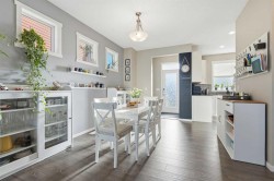 Original owner, centrally located in the 4-season community of Auburn Bay away from all the traffic noise but walking distance to schools, Auburn Station and transit just outside a playground zone! A quaint North facing front porch offers access into the main floor boasting 9' ceilings with a tiled foyer and front lifestyle room. Laminate flooring stretches from the front to the back of this open plan with added transom windows over the center dining area. The rear of the home has a garden door to the South exposed backyard which comes fenced, landscaped and with your own double detached garage. The corner kitchen has classic white extended cabinets, a full set of stainless-steel appliances, quartz counters, soft close mechanics, a backyard window over the sink and a plethora of storage and prep space. Completing this level is a 2-peice bath and side stairs to the lower basement. The upper plan has room for all with 2 back kid's bedrooms their own tiled 4-peice bath with a counter height storage vanity, tiled floors and tub surround with added tile accents. Enjoy the convenience of an actual upper laundry room with extra space to move. The primary bedroom is situated at the front of the home and comes complete with a walk-in closet and tiled 3-peice en-suite bath offering a full-size shower, cabinets and drawers in the counter height vanity. An un-touched basement has the perfect layout for any future development with space for a 4th bedroom, storage, a recreation room and a 3rd full bath. Presented in pristine condition, this is the plan, location, community for any growing families needs!