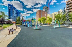 OPEN HOUSE Sat Dec 7th, 1-3pm. Beautifully UPDATED Immaculate, bright & freshly PAINTED 2-bedroom END UNIT offering Stylish URBAN living in this well-managed building. Located in one of Calgary’s most walkable communities. The open layout flows easily, offering endless options for your personal style & furnishings. Modern kitchen features GRANITE counters, SS appliances, NEW upper cabinet & the convenience of IN-SUITE LAUNDRY & PANTRY in a separate room off the kitchen. Bedrooms are spacious & filled with natural light. The refreshed 4-piece bathroom features travertine counter & a NEW tub & tile. NEW lighting throughout & bdr CEILING FANS adds to the clean modern feel. Step out onto your QUIET & VERY PRIVATE WEST-facing balcony, perfect for winding down at the end of the day. Located along a picturesque, tree-lined one-way street with a BIKE LANE - yet just 2 blocks from iconic 17th Ave’s endless shops, cafés & restaurants & an easy walk to Downtown. With exceptional storage (multiple closets + a separate storage unit), a well-run building, convenient parking stall just steps to the back door & only 1 flight up to your unit, this home offers the perfect blend of SYYLE, COMFORT & UNBEATABLE LOCATION.