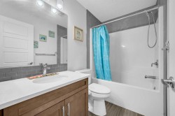 LEGAL BASEMENT SUITE / MAIN FLOOR BED AND BATH / EXTENDED DOUBLE GARAGE / CONCRETE PATIO / MOUNTAIN VIEWS FROM FRONT WINDOW / GOURMET KITCHEN / JUST 3 min. WALK TO CORNERSTONE PLAZA. Welcome to this beautifully upgraded home offering comfort, functionality and future potential. The main floor bedroom and full bathroom provide flexibility and convenience for guests or extended family. The home showcases an open layout concept with extra windows, filling the space with natural light and creating a bright, airy atmosphere. Enjoy cooking and entertaining in the modern gourmet kitchen, complemented by feature walls in different areas. Upstairs offers 3 spacious bedrooms, including a large primary bedroom with a double vanity ensuite. Take in stunning mountain views from the front window, adding a peaceful touch to everyday living. A versatile loft area provides extra living space, perfect for a home office, study area, or kid's play zone. Featuring a Legal Basement Suite, this property is perfect for rental income or multi-generational living. It includes 2 bedrooms, Rec area, Kitchen and a separate laundry. Outside, enjoy your concrete patio, ideal for entertaining and barbeque. The extended double garage is designed for larger vehicles and can comfortably park two full size pickup trucks, while still offering room for storage. Conveniently located just a 3-minute walk to nearby Cornerstone Plaza, providing quick access to shops, restaurants, and everyday conveniences. Book your showing today to see this beautiful house.