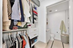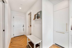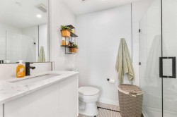 Welcome to the beautiful West! This two-bedroom, two-bathroom residence, situated in the heart of a master planned community, boasts desirable south exposure and southwest mountain views. This quiet, concrete building offers a chic aesthetic with high-end finishes, including air conditioning, luxury wide flooring (no carpets), and elegant penny round mosaic tiles in all baths. Enjoy bright and functional living with pot lights, 9-foot painted ceilings, and a luxurious white kitchen featuring brushed gold hardware, a high-end gas cooktop, wall oven, an integrated 36" Fisher & Paykel fridge, panelled dishwasher, and soft-close custom cabinetry with under-cabinet lighting. Quartz countertops and backsplash add a touch of sophistication. Downstairs, vibrant shopping, dining, fitness centres, and everyday amenities are at your doorstep. Radio Park is nearby, and you are close to schools, transit, and all amenities, with a quick connection to Stoney Trail for heading out to the mountains. The building is impeccably maintained and includes underground parking, a dedicated storage unit, bicycle storage, concierge service during the day, and underground visitor parking.