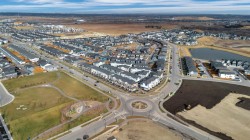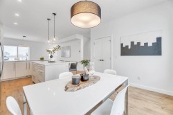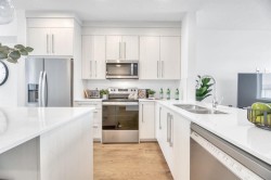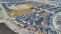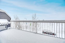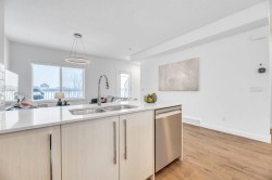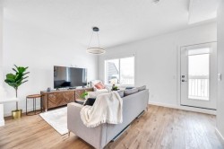 Welcome to this immaculate 3-bedroom, 2.5-bath townhome in the peaceful and scenic community of Creekstone in Pine Creek. Offering nearly 1,700 sq. ft. of usable space, a double-attached garage, and a highly functional layout, this beautifully styled home delivers comfort, versatility, and exceptional value.Perfectly positioned directly across from a green space, this home provides lovely views and the convenience of street parking right out front, in addition to the attached garage.The main floor features a bright and spacious multi-purpose room—ideal as a home office, gym, guest room, or fourth bedroom—giving you added flexibility to suit your lifestyle.Upstairs, you’ll find an impressively open and airy layout with a massive kitchen offering abundant counter space, pantry storage, stainless steel appliances, and extensive cabinetry. The large island is perfect for cooking, entertaining, and everyday living. The dining and living areas flow seamlessly together, enhanced by a neutral designer palette and beautiful natural light.The upper level hosts three well-sized bedrooms, including a comfortable primary suite with a walk-in closet and private ensuite. A full laundry area and an additional bathroom complete this level.This home is truly move-in ready and shows pride of ownership throughout.Located in a quiet, nature-rich neighborhood, you’re moments from Sirocco Golf Club, Spruce Meadows, walking paths, ponds, and beautiful open spaces. Commuting is effortless with quick access to Stoney Trail and Macleod Trail, connecting you easily to amenities, retail, and the rest of the city.A spacious, stylish, and exceptionally maintained home in a peaceful setting—this is one you won’t want to miss.