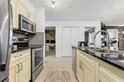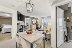 Welcome to Legacy—where style, comfort, and convenience converge in one of Calgary’s most desirable and thoughtfully planned communities. This beautifully appointed 3-bedroom, 2-bath second-floor condo offers a rare opportunity with 938 square feet of exceptional living space, seamlessly designed for both functionality and modern living. From the moment you step inside, you’re greeted by a generous foyer finished with durable tile flooring, which extends into the laundry room and pantry, offering abundant storage—an unexpected luxury in condo living. The heart of the home opens into a beautifully decorated and stylishly finished living area, highlighted by a granite extended island, modern backsplash, and shaker-style cabinetry paired with sleek stainless steel appliances. Every detail feels curated, creating a space that’s as inviting as it is sophisticated. The spacious primary suite is a true retreat, featuring an oversized window that fills the room with natural light, a walk-through closet, and a 3-piece ensuite complete with granite counters, beautiful gold vanity hardware, and an oversized glass-enclosed shower. Two additional sizeable bedrooms—each with ample closet space, and one with another large window—provide versatility for family, guests, or a dedicated home office. Step outside onto the large covered deck, framed with iron railing and overlooking a dedicated stretch of greenspace accented by mature bushes and trees. It’s the perfect spot to unwind, sip a morning coffee, or enjoy Calgary’s warm summer evenings. This exceptional condo also includes a titled underground parking stall and plenty of visitor parking right out front. Just steps away, you’ll find the vibrant offerings of Legacy Township—restaurants, groceries, fitness, shopping, and all the essentials at your fingertips. Living in Legacy means embracing a lifestyle where nature, convenience, and community meet. Home to over 300 acres of environmental reserve, 12 playgrounds, four commercial districts, All Saints High School, and a brand-new K–9 school opening in 2026, Legacy truly offers everything your family needs. With close proximity to the Bow River, Fish Creek Park, Spruce Meadows, and quick access to Macleod Trail and Stoney Trail, adventure and amenities are always within reach. Even the mountains call from just minutes away. Legacy Heights isn’t just a place to live—it’s a place to thrive. Welcome home.