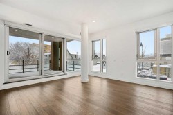 Modern comfort, thoughtful design, and an unbeatable Bridgeland location come together in this beautifully refreshed residence at Unit 223, 88 9 Street NE. The home has been recently repainted, giving every room a clean, crisp feel that pairs perfectly with the building’s contemporary aesthetic. Large windows bring in generous natural light, enhancing the open-concept layout and creating an inviting atmosphere throughout the main living space.The kitchen serves as an elegant focal point, outfitted with quartz countertops, stainless steel appliances, and sleek cabinetry that offers excellent storage and workspace. Its seamless integration with the living and dining area supports both relaxed evenings at home and effortless entertaining. The private balcony extends the living space outdoors, providing a comfortable spot for morning coffee or evening unwinding.The bedroom is well proportioned, offering a calm retreat with ample closet space and easy access to the stylish bathroom, which features modern finishes and a streamlined design. In-suite laundry adds everyday practicality, making the home as functional as it is attractive.A rare advantage of this unit is the inclusion of two titled side-by-side parking stalls, a highly desirable feature that adds convenience and flexibility for multi-vehicle households or guests. Storage is efficiently planned throughout the home, contributing to an organized and clutter-free lifestyle.Residents of RADIUS enjoy access to an impressive array of amenities within this LEED-certified concrete building. The property offers a fully equipped fitness centre, spin studio, yoga and movement room, pet-washing station, rooftop terrace with panoramic views, concierge services, and dedicated spaces for community gatherings. These features create a distinctive living experience that blends comfort with elevated convenience.Set in the vibrant heart of Bridgeland, the location places you steps from cafés, dining, boutique shopping, local markets, parks, and the river pathway system. Proximity to the C-Train and downtown ensures quick and easy commuting, while the surrounding community provides a warm, walkable environment filled with character.This thoughtfully upgraded and exceptionally well-located home offers a compelling opportunity for anyone seeking stylish urban living with premium building amenities and outstanding value. One or more photo(s) was virtually staged to help viewers visualize the home’s appearance when furnished.