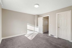 Welcome to Wild Flower of Bridlewood, a charming townhome complex perfectly situated in the peaceful and highly sought-after community of Bridlewood. This beautifully maintained residence combines comfort, convenience, and style, featuring 2 spacious bedrooms, 1.5 baths, and the added benefit of an attached single garage. Offering over 1,200 sq. ft. of well-designed living space, this home invites you in with a bright and airy living room showcasing large windows, a cozy gas fireplace, and direct access to a spacious deck, ideal for enjoying sunny days. The kitchen is equipped with hardwood floors, classic wood cabinetry, mobile island and white appliances, creating a clean and welcoming space for meal preparation. Upstairs, you’ll find two generous bedrooms, including a primary suite complete with a walk-in closet featuring built-in organizers, and a 4-piece main bath. Convenient upper-floor laundry adds to the thoughtful layout. The unfinished basement offers excellent potential, perfect for a home office, gym, or additional storage. Enjoy the green space and walking path just steps from your back door, enhancing the sense of community and outdoor living. Ideally located with easy access to Stoney Trail, this home is close to schools, parks, shopping, dining, and transit, making it an excellent choice for families, professionals, or investors alike. Experience the perfect blend of comfort and convenience, schedule your private showing today and discover all that this home has to offer!