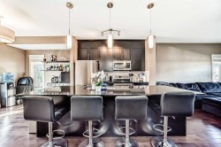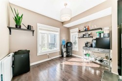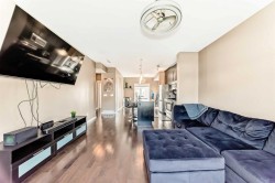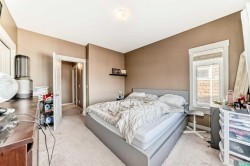 MODERN END UNIT | 2012 BUILD | 3 PARKING NEAR BY OPTIONS | DOUBLE GARAGE | GREAT LOCATION | FLEX ROOM + DEN | FULLY FINISHED. This move-in ready townhouse in Skyview Ranch combines modern design, functional space, and one of NE Calgary’s most convenient locations—all at outstanding value. Well maintained property, built in 2012 but feels like 2022. Tt’s bright and welcoming with windows on 3 sides and no front/back neighbours. The entry level offers a double attached garage (brand-new door), storage, and a versatile flex room—ideal as a gym, office, hobby space, or bedroom—plus a private front patio. The main floor impresses with a spacious great room, dining area, half bath, and a chef’s kitchen featuring quartz counters, large island, upgraded cabinets, stainless steel appliances, OTR microwave & under-mount sink. Step onto the east-facing deck for BBQs or summer evenings. Upstairs boasts 2 bedrooms including a primary with ensuite, another full bath, an office/den and a brand new set of washer/dryer. Walk to schools, parks, pond & playgrounds, with fast access to Stoney, Deerfoot, Airport & CrossIron. A 3-minutes walk to the bus station. A stylish newer home in a prime location—an exceptional opportunity you don’t want to miss.