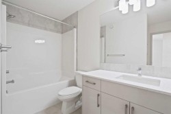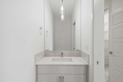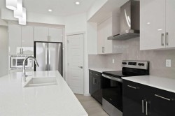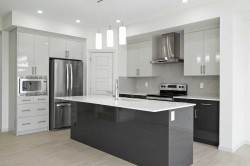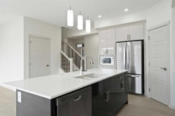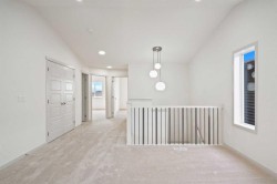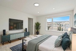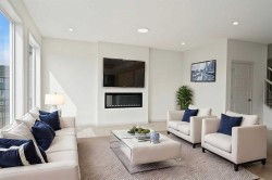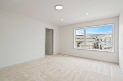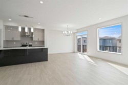Welcome to this high-quality, 4 bedrooms and 3.5 bathrooms brand new built home by Morrison Homes, located in the highly sought-after north community of Livingston in Calgary. The home is close to parks, playgrounds, walking and biking pathways, shopping and easy access to Stoney Trail, Deerfoot Trail, and Cross Iron Mills. Upon entry, you are impressed by the Entrance with a picture window and beautiful tile floor, and wrought iron spindles on the stairs leading to the upper level, an open concept design with 9’ ceilings, LVP flooring throughout, and enhanced by large west facing windows allowing for tons of natural light in. The main floor also provides a gourmet kitchen complete with a large island, upgraded stainless steel appliances, built in microwave, chimney hood fan, upgraded quartz countertop, a walk-through pantry and a big dining area with two large sliding doors leading out onto a large deck with vinyl surface. The spacious living room boasts an electric fireplace. Additionally, there is a mudroom and powder room on this level. Upstairs features a bonus room with vaulted ceiling, a large primary bedroom with a large window, a walk-in closet, and a 5-pc ensuite with double vanities, a shower, and a tub. Two additional generously sized bedrooms with big windows and great mountain views, a 4-pc family bathroom, and a laundry closet complete the second floor. The walkup fully finished basement provides a bright spacious recreation room with Kitchen rough-in, a fourth room with large window and a third 4-pc bathroom. This home also comes with the New Home Warranty, offering peace of mind. Livingston is one of Calgary's most desirable neighborhoods, offering incredible amenities, including the 35,000 sq. ft. Livingston Hub, which features an ice rink, water spray park, gymnasium, playground, tennis court, banquet facility, community kitchen, daycare space, and more. Call to view!