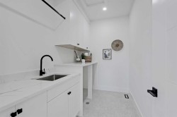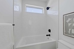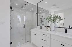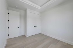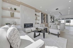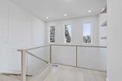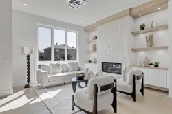 Tucked into the heart of SHAGANAPPI, this brand new 5-BED, SEMI-DETACHED home w/ LEGAL 2-BED SUITE (City approved) blends modern luxury with everyday comfort. Step through the arched entry to a welcoming foyer w/ walk-in coat closet, plus a stylish front OFFICE framed by glass doors, built-in desk & cabinetry—ideal for work-from-home. Wide-plank hardwood flows into the open-concept main floor, designed for living and entertaining. The living room centers on a sleek gas fireplace wall w/ designer tile surround and custom built-ins w/ inset lighting. At the back, the chef’s kitchen steals the show, anchored by a dedicated dining area w/ designer lighting, glass-front built-ins & in-cabinet lighting. High-end S/S appliances—gas range, custom hood fan, and DOUBLE WIDE FULL FRIDGE/FULL FREEZER, microwave & dishwasher—shine against an oversized quartz island built for gathering and stunning quartz backsplash with pot filler. A WALK-IN PANTRY w/ custom shelving adds smart storage. Bi-parting doors open to a large patio, extending the space outdoors. A chic powder room and mudroom w/ custom finishes complete this level. Upstairs, the primary suite feels like a retreat, w/ vaulted ceilings and oversized windows. The spa-inspired ensuite has it all: freestanding soaker tub, huge glass shower w/built in bench & rough in for steam, dual vanities w/ makeup desk, plus a dreamy walk-in closet. Two more bedrooms—each w/ TRAY CEILINGS with built-in lighting—share a stylish Jack & Jill bath w/ separated vanity & bath areas. The loft/study offers open shelving and flexible space for reading, working, or relaxing. A well-planned laundry room finishes this floor. The fully finished EXTENDED BASEMENT adds almost 1100sqft of additional living space. The legal 2-bed suite features quartz counters, S/S appliances, custom cabinets, private laundry, and its own side entrance w/ built-in storage. A bonus third space can connect to the suite or be locked off as a private GYM for the main home making it perfect for guests, family, or a rental incentive. Set in the vibrant Shaganappi community, this home puts Calgary’s best at your door. Golf at Shaganappi, stroll parks and pathways, or zip downtown in minutes. With great schools, trendy restaurants, boutique shopping, and easy transit nearby, this is modern city living at its best. All you have to do is move in! *Photos from show suite, finish may vary