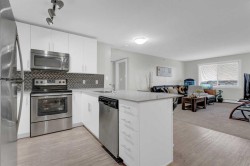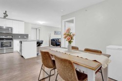 TOP FLOOR | CORNER UNIT | 2 BEDROOMS | TITLED UNDERGROUND PARKING! Welcome to this stunning top-floor corner unit in the highly desirable McCall Landing community of Skyview Ranch! Thoughtfully designed with a bright, open layout, this home blends modern style with exceptional functionality. The spacious living area is flooded with natural light from large windows and opens onto a private balcony perfect for relaxing or enjoying your morning coffee. A designated dining area comfortably fits a 6-piece dining set, offering a true home-style layout rarely found in condo living. The upgraded kitchen features quartz countertops, sleek tile backsplash, contemporary cabinetry, and stainless steel appliances, making it an ideal space for cooking and entertaining. Durable vinyl plank flooring runs throughout the main areas, while plush carpet in the living room and bedrooms adds warmth and comfort. Enjoy the convenience of in-suite laundry with side by side washer and dryer, generous storage, and a titled underground parking stall, ensuring comfort and security year-round. As a resident of McCall Landing, you’ll have access to an impressive array of amenities, including a fully equipped fitness centre, recreation/party room, bike storage, and a vibrant community centre with an outdoor picnic area and dog run, perfect for pet owners (pets allowed with board approval). This well-managed, pet-friendly complex offers unmatched value, comfort, and community. Experience modern living in Skyview Ranch and make this beautiful condo your next home!