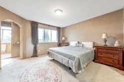 Former Jayman Showhome in Cougar Ridge offering over 3,000 sq.ft. of bright, well-designed living space with a fully finished walkout basement. The main floor features 9 ft ceilings, hardwood floors, and an open kitchen with granite counters, stainless steel appliances, and an island. A few steps up, a cozy bonus room provides a bright flex space. Upstairs includes three bedrooms, a primary bedroom with walk-in closet and 5-piece ensuite with double sinks, a second full bathroom with double sinks, and a large office. The walkout basement has large windows, two bedrooms (one with high ceilings), a full bathroom, a spacious rec area, and a living room with floor-to-ceiling stone fireplace and bar. Additional features include a finished and insulated garage, new water heater, new washer, updated basement flooring, A/C, central vac, sound system, and a mature treed yard. Located on a quiet street near a pond, scenic trails, and top amenities.