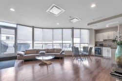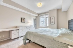 BRIGHT OPEN PLAN, CORNER UNIT WITH EXTRA WINDOIWS, FACING ONTO THE QUIET COURTYARD, WITH SW EXPOSURE. This condo has one of the best layouts in the complex with over $20K in upgrades and a plan that's excellent for furniture placement. Step into the home and enjoy the open plan, with 9' knockdown ceilings throughout, engineered hardwood floors in the main areas, carpet in the bedrooms and ceramic tile in the foyer, kitchen and bathrooms. The living and dining room areas are very spacious, perfect for entertaining or enjoying quiet evenings at home. This steel and concrete building is well placed in Varsity and a 10 minute walk to the LRT platform The two bedrooms are conveniently separated by the main living area, giving extra privacy to each bedroom. The primary bedroom has a 4 piece bath, dual sinks, custom toilet, big walk in closet and quartz counters. The second bathroom is a 4 piece conveniently located close to the second bedroom. OPEN KITCHEN LAYOUT with a massive quartz counter island, lots of drawers and cabinets, stainless steel appliances and an undermount sink. Enjoy the convenience of a separate laundry room with additional storage. Additional features include unit-controlled heating and CENTRAL AIR, custom window coverings and assigned separate storage locker in the underground parking area(#9261). Parking stall #45 is only steps away from the elevator and very close to the entrance overhead door. Monthly condo fees cover heat, water and sewer. Jump on the elevator in your sweats and ride up 5 floors, WITHOUT STEPPING OUTSIDE, to access world-class amenities...fitness center & steam rooms, meeting room & wrap around rooftop terrace with views of the mountains, Canada Olympic Park & Nosehill Hill Park. There is an on-site medical center with pharmacy & walk-in clinic. The best in maintenance-free living here in this premier location in one of NW University District, hospitals(Foothills Medical Centre, Alberta Children's and Arthur J.E. Child Cancer Centre), Bowmont Park, major retail centers, highly rated schools & easy downtown access. EXCELLENT VALUE!! QUICK POSSESSION.
