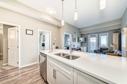 Experience the timeless charm of Voysey Arts and Crafts Old English Architecture in this impeccably maintained, one-owner TOP FLOOR unit—filled with warmth and natural sunlight—located in a well-managed complex in the highly sought-after lake community of Mahogany.This bright two-bedroom home features a 4-piece bathroom, a cozy living room, a bright kitchen, and a private balcony with a gas hook-up overlooking the park. Being on the top floor, it is perfectly positioned away from street noise and traffic.Enjoy a fresh, modern open-concept design with white ceiling-height kitchen cabinets, QUARTZ countertops with a breakfast bar, and neutral laminate flooring for easy maintenance. For added convenience, the in-suite storage and laundry room come equipped with a washer and dryer.The heated underground parkade includes a titled indoor parking stall and an assigned storage unit. The complex also offers excellent amenities such as a fitness centre, guest suite, library, bike storage, and beautiful outdoor gathering spaces for the summer months.Mahogany provides exceptional lifestyle perks: grocery stores, dining, cafés, parks, and pathways all nearby. You’ll also enjoy access to a freshwater lake with a beach club and be within walking distance of 30 hectares of protected natural wetlands.Whether you're looking for a great investment property or a place to call home, this unit is priced to sell in one of Calgary’s most desirable lake communities.