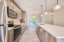Welcome to Your Dream Townhouse in Shawnee Slopes!Discover contemporary living at its finest in this never-lived-in 3-bedroom, 2.5-bath townhouse offering 1,452 SQFT of stylish, thoughtfully designed space. Nestled in the heart of Shawnee Park, this home combines modern finishes, functional layout, and a prime location—perfect for professionals, families, and urban explorers alike.? Unbeatable LocationEnjoy seamless access to the Stoney Trail ring road and just a short walk to the Shawnessy LRT station, making downtown commutes and cross-city travel a breeze. Shopping, dining, schools, and parks are all within easy reach.?? Stylish & Modern InteriorStep into a grand foyer with 9-foot ceilings and luxury vinyl plank flooring throughout the main level. The open-concept layout features a bright dining area with direct access to a private outdoor patio—complete with a gas hookup for your BBQ, perfect for entertaining.?? Chef-Inspired KitchenLove to cook? You’ll fall for the gourmet kitchen showcasing a massive quartz island, stainless steel appliances, pot lighting, and ample cabinet space—a perfect blend of style and function.?? Bright & Inviting Living RoomThe spacious living area is flooded with natural light through large windows, offering a warm and welcoming atmosphere. A powder room and walk-in closet on the main floor add convenience and practicality.?? Peaceful Upstairs RetreatUpstairs, unwind in the serene primary suite featuring a private ensuite with quartz vanity and a luxurious stand-alone shower with dual seating benches. Two additional bedrooms—ideal for guests, a nursery, or a home office—plus a stacked laundry closet and a full 4-piece bathroom complete the second level.?? Tandem Attached GarageThe attached tandem garage offers secure parking for two vehicles and additional storage space, with convenient access to the rear of the home.?? Nature & Community at Your DoorstepStep outside to enjoy beautiful walking paths, green spaces, and easy access to the natural wonders of Fish Creek Park.?? Don’t miss your opportunity to own a turnkey home in sought-after Shawnee Park. Luxury, location, and lifestyle—this one has it all!
