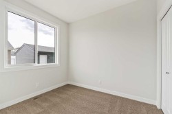 An incredible opportunity to own a brand-new home with a DOUBLE DETACHED GARAGE and IMMEDIATE POSSESSION in the desirable new community of Livingston. This bright and sunny home is situated on a northwest-facing lot, allowing natural light to pour through the main level throughout the day. Offering 4 bedrooms, 3.5 bathrooms, two living areas, and an undeveloped basement with a private side entrance, this property is ideal for investors, multi-generational living, or families looking for space to grow. Built by Brookfield Residential, the Oxford model is a beautifully designed home with nearly 2,000 sq. ft. of developed living space above grade. The open-concept main floor features 9-foot ceilings, extended-height cabinetry, and a large central island with a gourmet kitchen package that includes a chimney-style hood fan and built-in wall oven and microwave. The spacious great room is filled with natural light and is perfect for both everyday living and entertaining. A main floor bedroom with its own full ensuite adds excellent flexibility for guests, extended family, or a private home office. Durable and stylish luxury vinyl plank and tile flooring flow throughout the main level, making the home well suited for families with children and pets. Upstairs, a central bonus room separates the primary suite from the secondary bedrooms, creating a thoughtful and functional layout. The primary bedroom features a well-appointed ensuite with dual sinks and a walk-in shower. Two additional bedrooms, a full bathroom, and a dedicated laundry room complete the upper level. The basement is undeveloped and ready for your design ideas, with direct access from a private side entrance offering excellent future potential. Completing the property is a brand-new double detached garage to keep your vehicles clean, warm, and secure year-round, along with a private backyard to enjoy. This home is brand new and comes backed by both the builder warranty and the Alberta New Home Warranty, offering peace of mind for years to come. The Oxford truly offers it all with 4 bedrooms including a main floor bedroom, 3.5 bathrooms, two living spaces, and a flexible layout designed to meet a wide range of needs.