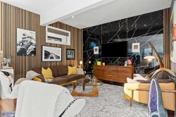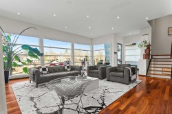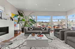 Welcome to this custom-designed 3-storey luxury home offering over 6,000 sq ft of beautifully crafted living space in the prestigious community of Elboya. Designed for large families and avid entertainers, this residence blends modern elegance, thoughtful function, and impressive downtown views, highlighted by a show stopping integrated steel elevator inspired by a New York loft, providing seamless access to every level. The bright, open-concept main floor features Brazilian cherry hardwood, soaring ceilings, and floor-to-ceiling windows allowing an abundance of light into the space and framing mature greenery. A striking marble-faced gas fireplace anchors the living room, while the spacious dining room easily hosts large gatherings. The chef-inspired kitchen offers quartz countertops, peninsula seating, custom cabinetry, and premium appliances including Fisher & Paykel oven, Thermador 5-burner cooktop, Jennair refrigerator, and Bosch dishwasher. A wood-slat feature wall elegantly defines the open concept den, and large sliding doors open onto the private backyard, creating a natural indoor/outdoor flow ideal for year round entertaining. A powder room and laundry room complete the main level. The second floor hosts an exceptional primary retreat with oversized windows, remote-controlled Hunter Douglas blinds, private balcony with downtown views, walk-in closet, and a spa-like 5-piece ensuite with steam shower, soaker tub, and smart toilet. The second bedroom includes a 4-piece ensuite and walk-in closet, while two additional bedrooms share a full bath making it an ideal layout for families. The third level is an entertainer’s dream, offering incredible city views and a rare indoor gathering space designed for hosting at scale. A full secondary kitchen features a bar-height quartz island with wine fridge, making it perfect for get togethers or evening soirees. The fully developed lower level includes a large family/recreation room with generous windows, a spacious fifth bedroom with walk-in closet, dry bar with wine fridge, a 4-piece bath, and a dedicated wine cellar. Enjoy the fully fenced backyard designed for evening gatherings, complete with natural gas hookup, outdoor speakers, and a modern open layout showcasing the impressive showroom-style garage. Car enthusiasts will love the oversized 4-car garage with potential for six vehicles with stackers. Smart-home features include automated lighting, thermostats, security system with 10 cameras, and Sonos sound throughout. Additional features include air conditioning, irrigation system, and french drains. Situated in sought-after Elboya, this exceptional residence is mere steps from top-rated schools, Calgary Golf & Country Club, Britannia Shopping Centre, Stanley Park, Sandy Beach, numerous parks and pathways and quick access to downtown. With its rare combination of scale, craftsmanship, design, and location, this home presents a unique opportunity to own a truly extraordinary inner-city estate.