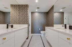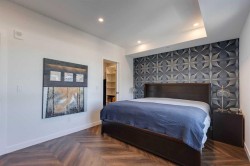 Welcome to Gateway West II – Urban Living at Its Finest in West Calgary.This immaculate, like-new residence blends contemporary design with elevated comfort. Year-round climate control is ensured with air conditioning, while Chevron wide-plank luxury flooring flows seamlessly throughout, adding warmth and refinement. The thoughtfully designed floor plan welcomes natural light through floor-to-ceiling windows, creating bright and inviting living spaces.The chef-inspired kitchen serves as the heart of this home, showcasing super-matte finishes, striking brushed-gold hardware, and quartz countertops with a matching backsplash. High-end appliances, including a gas cooktop, wall oven, and a Fisher & Paykel integrated refrigerator, make meal prep a pleasure. A paneled dishwasher, soft-close custom cabinetry, under-cabinet lighting, and a convenient eating bar complete this elegant and functional space—perfect for both entertaining and everyday living.Retreat to the spa-like primary bathroom, where custom penny-round mosaic tiles create a luxurious atmosphere. These same handcrafted tiles also enhance the second of three beautifully appointed bathrooms. Painted ceilings add to the home’s refined aesthetic, giving every space a polished and cohesive feel.Additional thoughtful touches within this unit include a California Closets built-in Murphy bed with a desk and storage in the second bedroom, a Culligan water purification system, and elegant custom wallpaper accents. Step outside to a spacious wrap-around deck and take in beautiful north-facing views.Residents enjoy access to EV charging stations, bike storage, an owner’s lounge and a rooftop patio, all within a vibrant community surrounded by shops, cafes, green spaces, and fitness options. Gateway West II is poised to become one of Calgary’s premier urban enclaves—where you can shop, dine, sip, or sweat just steps from your front door.Experience sophisticated suburban living redefined. Welcome home!