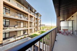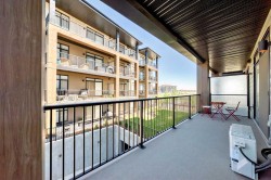 Welcome to this beautifully upgraded second-floor corner unit in the heart of Seton—offering over 957 sq. ft. of thoughtfully designed living space with premium builder enhancements throughout. Perfect for first-time buyers, professionals, or those looking to downsize without compromising on quality, this home offers a perfect blend of comfort, style, and location.Situated in the vibrant Seton West community, you'll enjoy unrivaled access to shops, restaurants, the South Health Campus, the YMCA, and the future Green Line LRT. With quick access to Deerfoot and Stoney Trail, commuting across the city is effortless.Inside, a welcoming foyer leads you into an expansive open-concept living area. The designer kitchen is a true centrepiece—featuring a custom-extended island, full-height quartz backsplash, built-in wall oven, and a chimney-style hood fan. Pot drawers, upgraded fixtures, and a sleek matte black faucet complete this culinary showstopper.The kitchen flows seamlessly into the spacious dining and living areas, enhanced by large windows and luxury vinyl plank (LVP) flooring that extends throughout, including both bedrooms. Step outside to your 130 sq. ft. private patio—ideal for morning coffee, summer BBQs (gas line included), or simply unwinding in comfort.The primary suite is a tranquil retreat with a large walk-in closet and a fully upgraded ensuite featuring dual under-mount sinks, a tiled walk-in shower, and quartz finishes. The second bedroom offers generous space and direct access to the main bathroom—perfect for guests or family.Additional features include central air conditioning, in-suite Samsung laundry, pot lighting, upgraded pendant fixtures, and a wall-mount TV package with hidden cable routing.This meticulously maintained home also comes with a titled underground parking stall (#605). Monthly condo fees include heat, water, building insurance, and more—ensuring both convenience and value.Enjoy a bright and balanced atmosphere with your northeast-facing balcony, offering pleasant morning sunlight and cooler afternoons—ideal for outdoor living without the heat intensity of west-facing units.Move-in ready and better than new, this is your opportunity to enjoy a refined lifestyle in one of Calgary's most sought-after communities. Contact your favourite real estate agent today to schedule a private showing of this exceptional home!