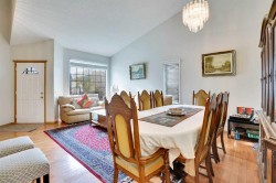 Welcome to this beautiful, warm and inviting home in the highly sought after community of Douglasdale Estates, closeby to the Bow River pathway system. As you enter, you are welcomed by an expansive ceiling and chandelier in the foyer, abundant natural light, hardwood flooring throughout the open-concept main floor, and a spacious layout. The kitchen highlights a centre island with granite counters throughout, with a lovely kitchen nook that overlooks the family room with a fireplace, and there is a cozy dining room located off the kitchen for entertaining as well. The laundry room and mud room conveniently located on the main floor is expansive with plenty of counter space, leading to the two-car garage. There are 3 spacious bedrooms upstairs along with 2 4-piece bathrooms, and a 3-piece washroom on the main floor. Enjoy a private, landscaped yard with a large deck ideal for relaxing or entertaining. Located near schools, transit, shopping, and golf, this property combines comfort, function, and location in one outstanding package. Situated just moments from the Douglasdale Golf Course, this charming home offers an amazing lifestyle in one of the community’s best pockets. Surrounded by walking paths, parks, and beautiful mature trees, this property blends urban convenience with a peaceful residential feel.