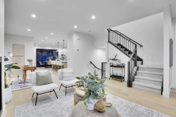 Unparalleled opportunity combining a legacy location on the park in desirable West Mount Pleasant, quality construction and exceptional design. This is your chance to own a brand new home with warranty in a coveted neighbourhood by a quality builder - Saville Homes. Showcasing timeless European inspired design and craftsmanship this stunning semi-detached home features a white brick facade, and Juliet balcony off the master bedroom. Large North facing windows offer serene views towards the park and offer a vantage to enjoy the all-season park with playground, fields and hockey rink in winter. The interior is modern yet timeless with an open floorplan design offering unique furniture configurations. The high-end kitchen features quartz countertops, and solid slab backsplash, two tone cabinets with white oak island and lower cabinets and sprayed shaker uppers. Engineered Oak Hardwood can be found throughout the main level. Beyond the kitchen is a dining area that opens to the rear patio with gas line and landscaped back yard with sod and new fence. Upstairs features a large hotel-inspired primary suite with dual closets and large spa-like 5-piece ensuite. The primary suite features views to the park and large sliding glass doors with Juliet balcony. Upstairs is a full sized laundry room with sink and two additional generous sized bedrooms that share a 5 piece bath with dual sink vanity. The lower level is fully finished with wet-bar in the large living area, bedroom and a separate office/den. Truly a unique offering facing the park and steps to Confederation Park in Calgary's inner-city, this home won't last long. Book your private viewing today!