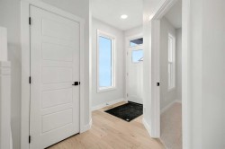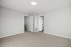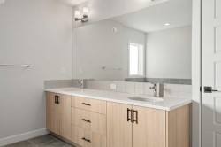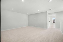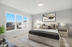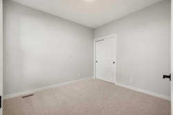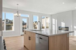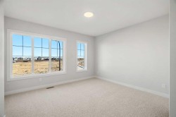 63 Creekstone Common SW, an exceptional new home in Calgary’s vibrant Pine Creek community that combines modern design, practical living, and natural beauty. Ideally located near scenic parks, pathways, and a peaceful community pond, this home offers a lifestyle that balances tranquility and convenience.Inside, the main floor features a thoughtfully designed layout with an inviting open concept. A main floor bedroom and full bathroom provide incredible flexibility—perfect for guests, multi-generational living, or a private home office. The chef-inspired kitchen is beautifully appointed with quartz countertops, 42-inch upper cabinetry and a generous layout that flows seamlessly into the great room, where a fireplace creates a cozy and welcoming ambiance. Elegant finishes throughout—including hardwood, tile, and carpet flooring—enhance the home’s sophisticated feel.Upstairs, a central bonus room serves as a comfortable retreat for family gatherings or movie nights, while the nearby full laundry room adds convenience to everyday living. The primary bedroom offers a true sanctuary with a luxurious 5-piece ensuite featuring dual sinks, a soaker tub, and a spacious walk-in closet. Two additional bedrooms round out this floor both equipped with walk in closets for added storage and convenience. Step outside to the rear deck, complete with a gas line, perfect for outdoor dining or entertaining. The side entrance offers added versatility and potential for future basement development. Built on a 9-foot foundation, the basement provides abundant space and flexibility for future customization.Combining style, comfort, and smart design, this home at 63 Creekstone Common SW is ideal for growing families, guests, or anyone seeking a peaceful community close to amenities and nature. Experience elevated living in one of Calgary’s most desirable new neighborhoods—your perfect home awaits. One or more photo(s) was virtually staged. The front exterior photo has been virtually staged with grass to help viewers visualize the home’s appearance once landscaping and construction are fully completed.