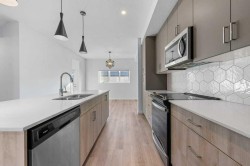 Welcome to this exquisite end unit townhouse with "NO CONDO FEE," perfectly situated in the desirable Pine creek community. Boasting a prime location with easy access to a wealth of amenities, this home is sure to impress. Step inside to a bright and welcoming atmosphere, where the open-concept design effortlessly connects the living area to the kitchen, creating an inviting space for both entertaining and everyday living. The kitchen is a culinary dream, equipped with modern appliances, including an electric range and microwave hood fan, complemented by sleek countertops, abundant cabinetry, and a versatile island. Upstairs, you'll find a serene retreat featuring two large sized bedrooms. Both bedroom offers a luxurious 4-piece ensuite bathroom and walk-in closets and a convenient laundry area with a washer and dryer complete the upper level. The unfinished basement provides a blank canvas for your imagination, allowing you to customize it to suit your needs, whether for extra living space or a recreational area. Outside, enjoy your private, fully fenced backyard. The detached double garage adds both security and ample storage. With seamless access to major roadways, commuting to downtown or exploring nearby areas is a breeze. In summary, this end unit townhouse combines modern comfort, convenience, and affordability, making it an exceptional place to call home in the vibrant Pine creek community